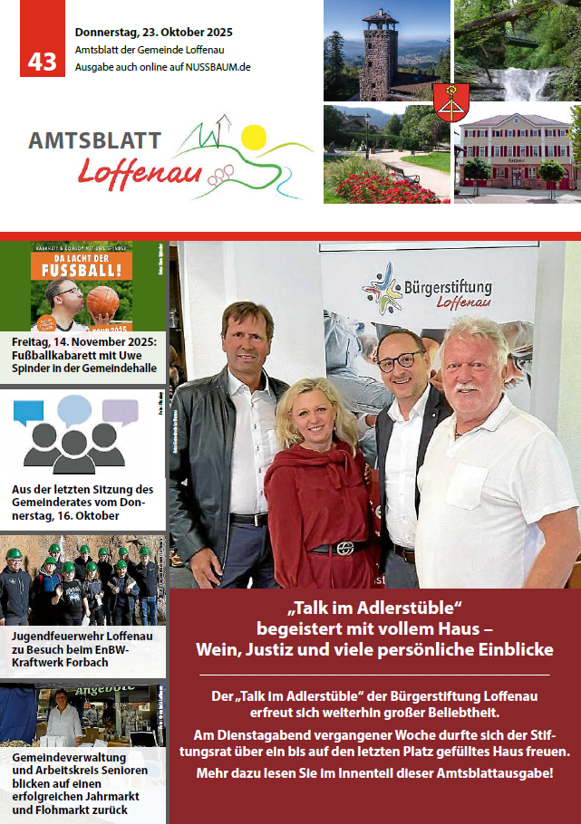 Le jumelage entre Steinbourg et Loffenau a été officialisé le 20 octobre 2018 en présence de Mme Viviane Kern, maire de Steinbourg, M. Markus Burger, Burgermeister de Loffenau et MM Patrick Hetzel, Député du Bas-Rhin, Thierry Carbiener, Conseiller Départemental et Dominique Muller, Président de la Communauté de communes du Pays de Saverne.